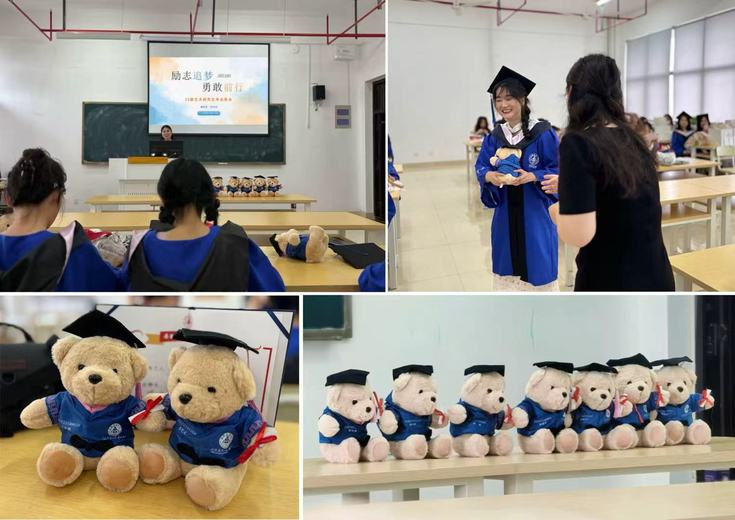 蝉鸣盛夏,骊歌渐起。属于我们的故事在最后一次主题班会“励志追梦 勇敢前行”中,迎来了最温暖、最不舍的终章。这不是结点,而是收获满满的新征程的起点。希望毕业生在工作中守住心底的诗和远方,找到属于自己的节奏,允许自己偶尔笨拙,允许梦想慢慢发芽,允许人生有非标准答案。学院向所有毕业生赠送了饱含祝福的定制毕业礼物——身着学位服、印有必赢76net线路官网校徽和每位毕业生学号与姓名的小熊玩偶。
