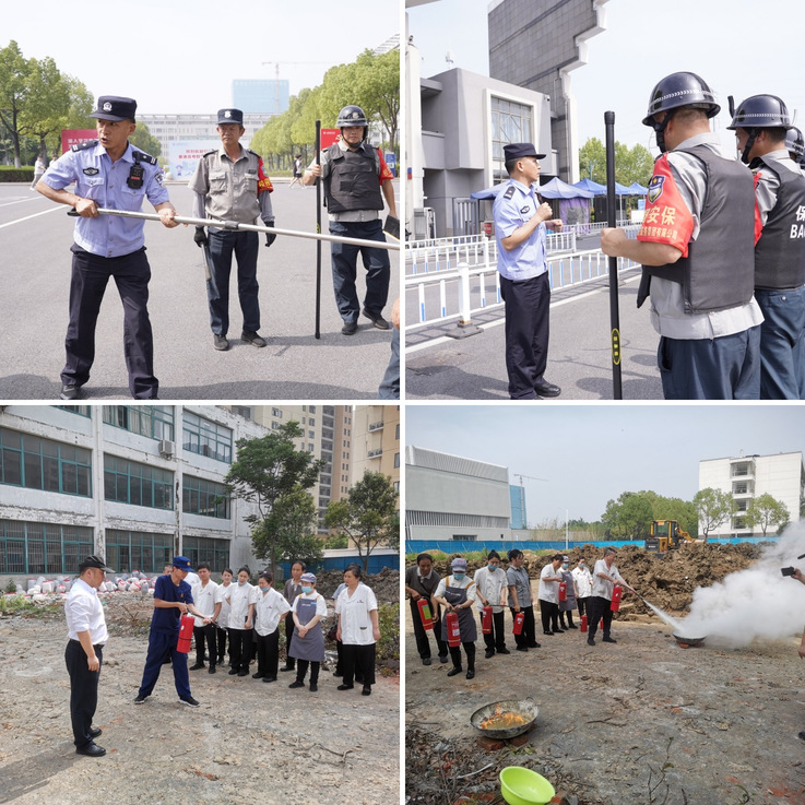为切实提高师生在突发事件中的应急处置能力,学校组织开展消防演练和应急处突演练。消防演练模拟食堂突发火情,从火情报警、疏散逃生到灭火救援全程实战化操作,学校微型消防站工作人员现场讲解灭火器提、拔、握、压四步操作法,使用灭火器、消防栓等设备顺利完成演练,参与人员表示活动演练让安全知识入脑入心;针对校园暴力事件,属地公安警官联合安保人员通过最小作战单元战术快速制服暴徒,开展应急处突演练,提高安保人员的应急处突能力和安全意识。