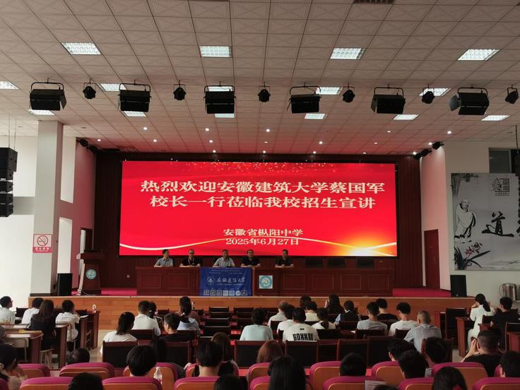 6月27日,校党委副书记、校长蔡国军带队,后勤管理处党总支书记姚勇、土木学院院长张宁、教务处副处长张广斌、建规学院副教授陈宜瑜等一行人赴枞阳中学开展2025年本科招生宣传工作。