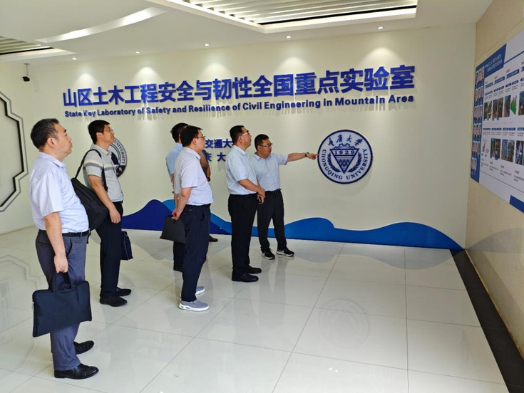 在本次活动中,蔡国军一行还先后参观了山区土木工程安全与韧性全国重点实验室、土木基础设施智慧建维研究院和校史馆。