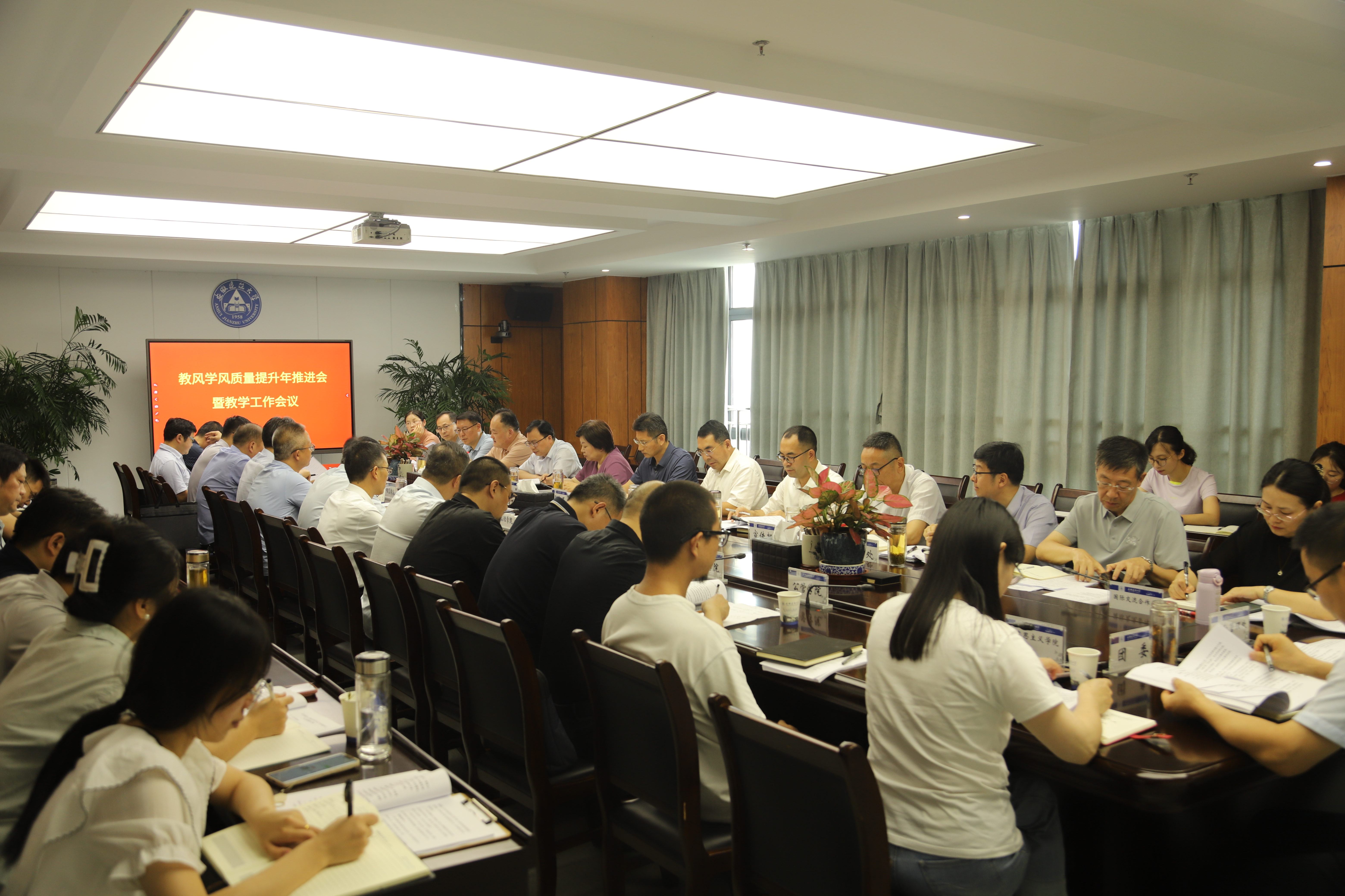 会议听取各部门及各学院汇报教风学风专项任务推进情况和下一步整改措施。教务处负责人围绕教风学风提升年方案实施中存在的问题、整改举措及2025版本科专业人才培养方案修订工作进行汇报。