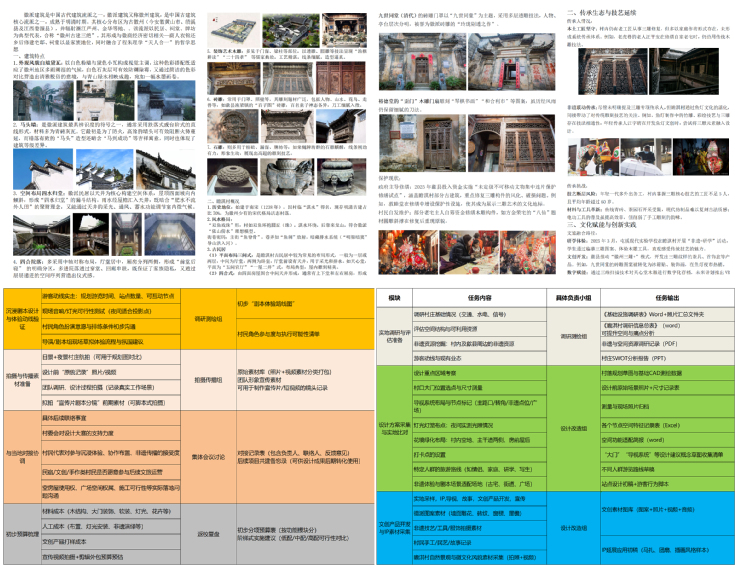 实践队充分发挥环境设计、视觉传达、动画等多专业优势,聚焦“乡村空间美化、文旅传播策划、非遗活态呈现”三个主题。团队成员在成行前系统梳理歙县地域文脉、古建遗存及非遗分布特征,创新构建“调研测绘、设计改造、拍摄传播”三组联动机制。调研测绘组引入“用户体验前置研究”多角色游客动线模拟法,预判空间使用难点;设计改造组提前完成目标村庄功能分区规划及品牌IP初稿;拍摄传播组精准设计叙事脚本与分镜头,确保影像创作与田野调查同步推进。