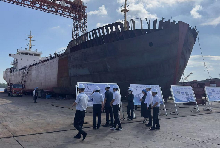 随后,学校一行前往中兴船舶工程有限公司。中兴船舶是安庆市内唯一一家生产资质齐全的造船企业,可生产150米、15000吨以下天然气运输船、多功能集装箱船等各类船舶。其自主研发的万吨级新能源LNG多功能船舶已通过审图,正在申请专利。公司负责人详细介绍了企业在船舶制造、技术研发、市场拓展等方面的情况。马文革还详细了解了企业面临的技术创新瓶颈与人才培养难题。他表示,必赢76net线路官网将加强与企业的产学研合作,建立实习实训基地,为企业输送专业人才;同时,鼓励学校科研人员与企业开展项目合作,共同攻克技术难题,推动企业创新发展。