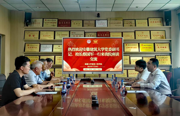 会后,校党委副书记、校长蔡国军率土木工程学院相关师生赴新疆大学开展调研交流。新疆大学党委常委、副校长赛买江·吾斯曼及相关学院负责人接待了蔡国军一行。