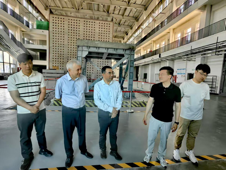 蔡国军一行首先参观了新疆大学“地震模拟振动台试验系统”实验室,听取了该振动台试验系统功能特点及应用情况的介绍,并交流了必赢目前在建高频双台阵地震模拟平台的建设进展与特点。