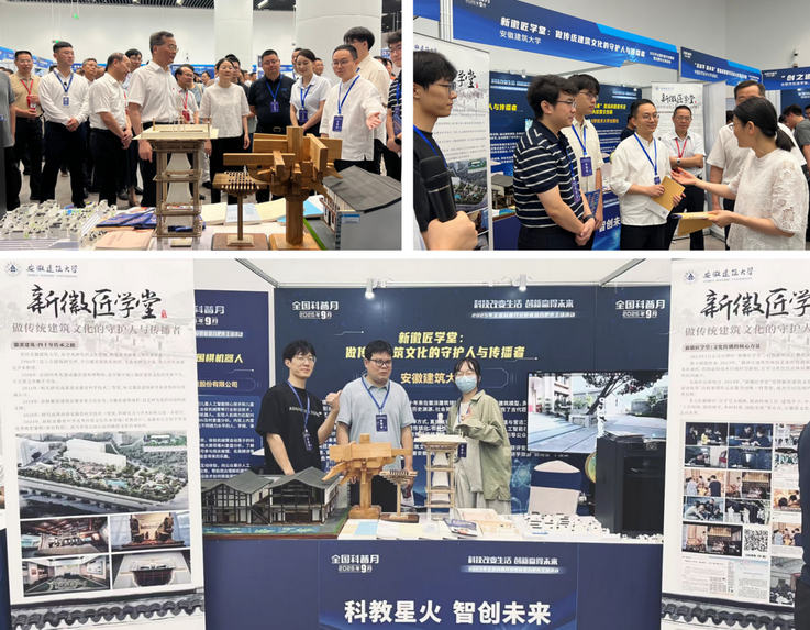 由建规学院与校团委共同选送的“新徽匠学堂”项目同期亮相安徽省科技馆,成为全国科普月安徽省暨合肥市主场活动中的亮点展区,吸引大量市民尤其是少年儿童现场体验。省领导韩军、任清华到校指导并给予高度评价。