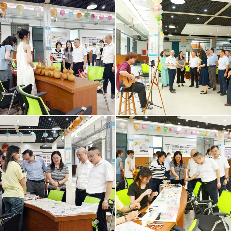高跃峰一行走访了建树楼一楼学生社团活动中心,观看了朝含国学社制作的发簪工艺品、书法作品、非物质文化遗产——葫芦烙画,聆听了传韵戏曲美育工作室和嘻哈研究社同学们的精彩演唱。他认真听取了社团负责人对社团特色和活动开展情况的介绍,对各社团丰富校园文化、提升校园文化底蕴,给予了高度认可与充分肯定。