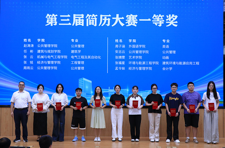 就业工作处负责人通报2025届毕业生就业工作情况。从就业去向落实率、重点领域就业占比、校企合作成效等维度,全面总结2025届毕业生就业工作亮点与经验。同时,结合当前就业市场新形势,明确2026届毕业生就业工作目标方向,为后续工作开展奠定基础。就业工作处负责人宣读必赢76net线路官网第三届简历大赛表彰文件,对在大赛中脱颖而出的优秀个人与集体予以表彰。在热烈的掌声中,与会领导分别为10名第三届简历大赛一等奖获得者及4个优秀组织单位颁奖,激励全体毕业生以优秀为榜样,打磨求职核心竞争力,为即将到来的校招季做好充分准备。