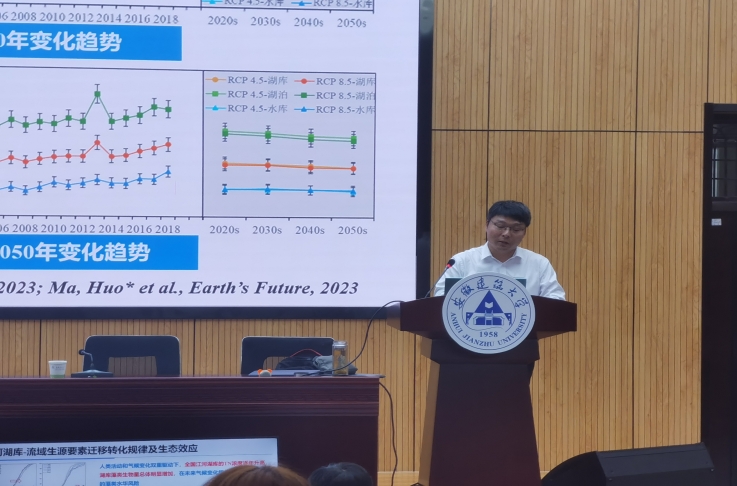 报告会上,霍守亮围绕湖泊富营养化控制中湖库藻类对氮磷污染物、水工程建设和气候变化的时空响应机理这一关键科学问题,介绍了湖库近百年的水生生态演变过程和机理,阐明了湖库富营养化的区域差异规律,构建了我国湖库营养物基准技术方法。随后,对湖库水生态安全领域的未来发展提出了独到的见解。