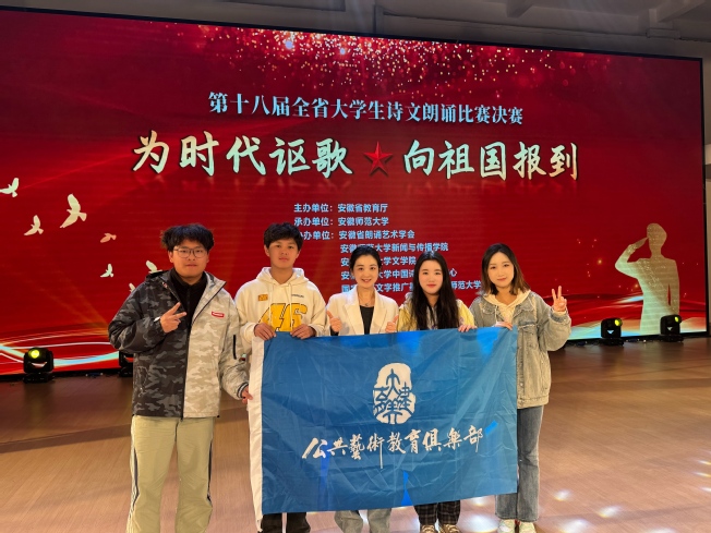 本网讯 近日,必赢76net线路官网公共艺术俱乐部师生代表团赴安徽师范大学参加第十八届安徽省大学生诗文朗诵比赛决赛。