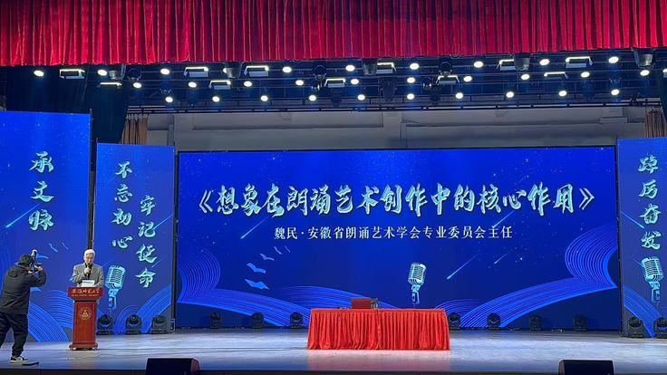 必赢公共艺术俱乐部代表队还参加了由安徽省朗诵协会举办的主题论坛,论坛期间,俱乐部代表成员还向安徽省朗诵艺术家魏民、安徽省朗诵艺术学会会长,国家一级演员许北雄老师等行业专家进行了朗诵专业问题请教和学习,收获颇丰。来自24自动化专业于淼同学,在此次学习中表示:“通过此次活动,我不仅在朗诵创作领域积累了实战经验,更在语言艺术表现方面取得了显著提升。我将把本次学习成果融入后续的朗诵与主持活动策划中。”