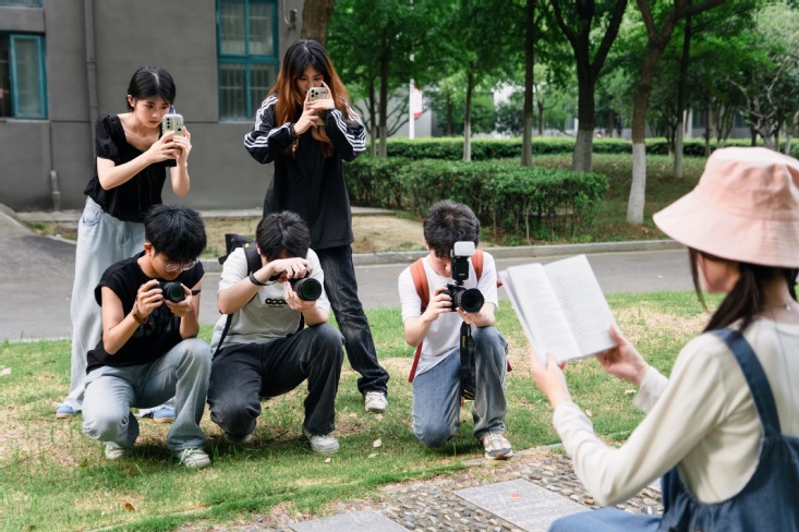 经纬书院内,传统曲艺魅力尽显。同学们表演的相声以字正腔圆的贯口、默契十足的捧逗,让书院回廊萦绕着浓郁的艺术气息。朗诵俱乐部在书院内,字斟句酌打磨台词讨论剧本,深切感受语言艺术的独特魅力。与此同时,民乐俱乐部成员指尖灵动,音符如涟漪在庭院水池中散开,与书香墨韵相融,绘就一幅雅致的文化图景,情景剧俱乐部在校史馆,依托馆藏文献资料,深入挖掘校史故事,找寻厚重的校史记忆,以“沉浸式”创作表达对学校深厚的感情。摄影穿梭各活动现场,用镜头定格美育实践的精彩瞬间。