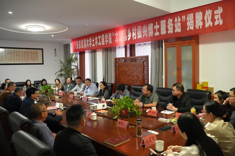 随后,王媛和王智平分别代表土木学院和太湖县委为“太湖县乡村振兴博士服务站”和“安徽宏泰钢结构股份有限公司博士服务站”揭牌。