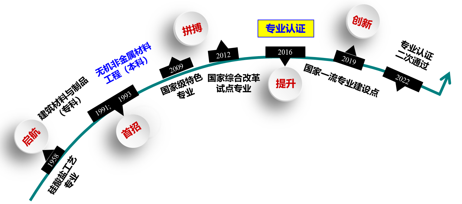 无机非金属材料是我国国民经济发展的重要基础原材料工业,是改善民生的基础性产业,也是支撑国防、航天航空以及节能环保、新能源、新材料、信息产业等战略性新兴产业发展的重要产业。传统的无机非金属材料工业的升级改造及新型功能性无机非金属材料开发是我国材料领域的热点和关键。无机非金属材料工程是一门涉及化学、物理、材料科学和工程等多领域的交叉学科,主要研究以无机非金属材料为主体的各类材料的理论基础和应用领域。必赢76net线路官网无机非金属材料工程专业隶属于材料科学与工程一级学科,前身为1958年建校时设立的硅酸盐专业,1959年招收首届学生。1991年更名为建筑材料与制品专业(专科);1993年更名为无机非金属材料工程专业(本科);2008年、2009年分别获批为省级特色建设专业和国家级特色专业;2011年成为省级人才培养模式创新试验区; 2012年被列为国家级专业综合改革试点专业。2016年首次通过国家教育部工程教育专业认证;2017年被列为安徽省特色(品牌)专业,2019年获批国家一流专业;2022年通过国家教育部工程教育专业认证复评。