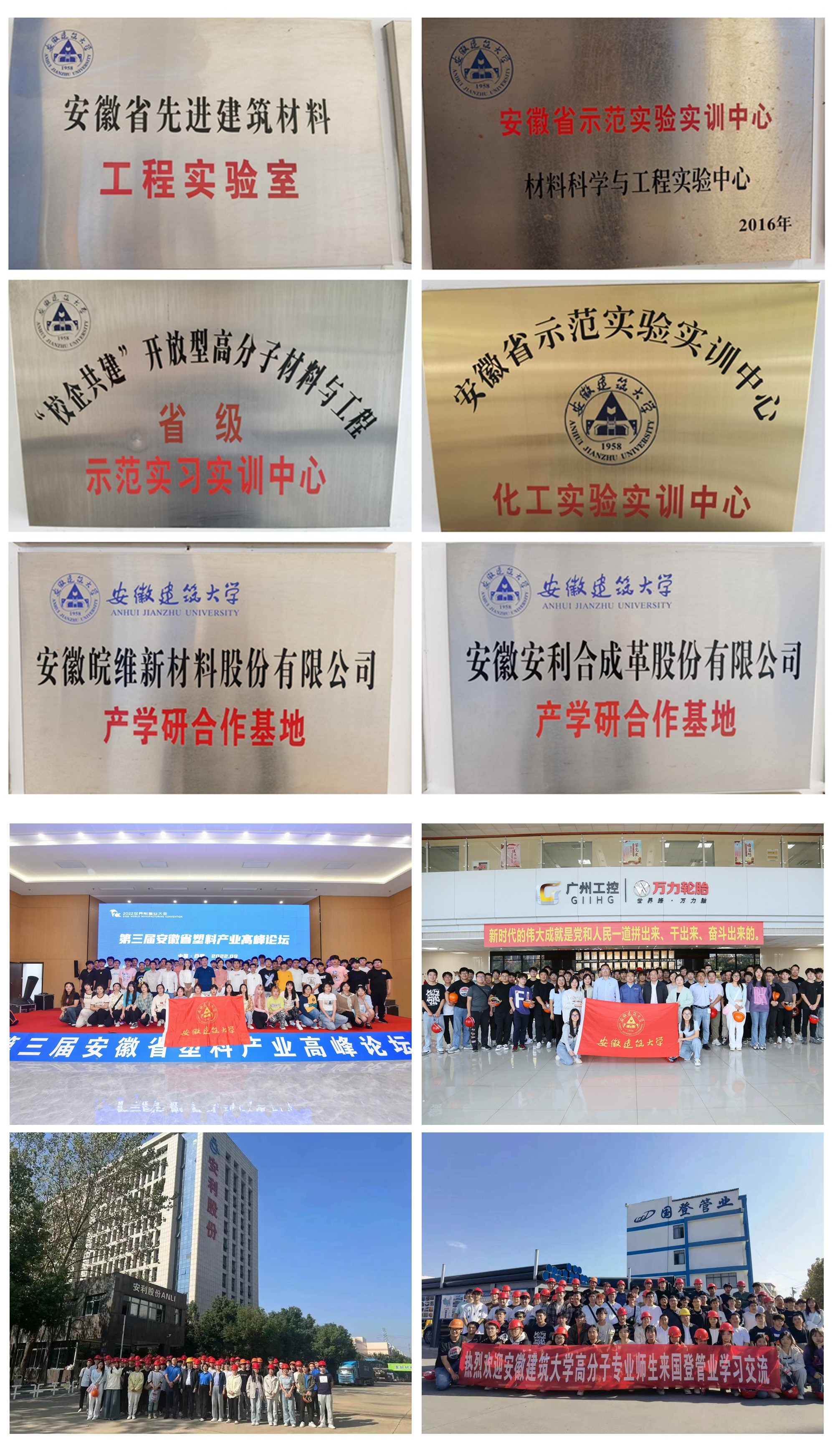 专业强调理论教学与实践教学的有机结合。为满足学生工程能力培养的需要,积极加强与社会的联系,2016年,与皖维集团合作共建的省级“校企共建开放实验实训中心”;同时,还先后与二十余家知名企业及研究院所建立了长期稳定的合作关系,并签定了长期的校外实习基地。主要有:安利合成革股份有限公司、合肥万力轮胎股份有限公司、安庆石化有限公司、中铁四局、江淮汽车集团、延峰(安徽)汽车内饰有限公司、安徽氯碱集团、德国大陆马牌轮胎公司、国通管业有限公司等。