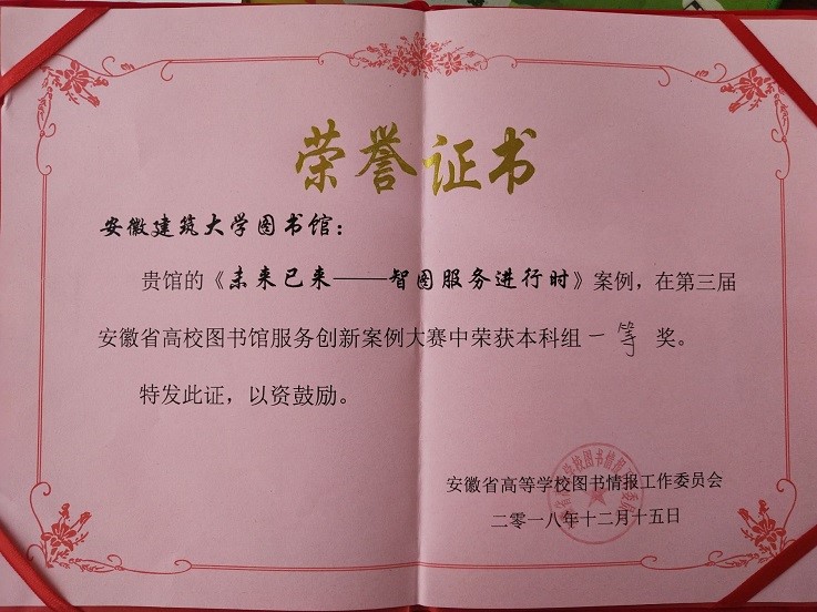 依据教育部《普通高等学校图书馆规程》和《普通高等学校图书馆评估指标》,图书馆制定实施《图书馆文明服务示范岗位和党员示范岗位工作方案》,修订《必赢76net线路官网图书馆岗位职责》《必赢76net线路官网图书馆业务管理制度》,加强图书馆人才队伍管理,提升馆员业务素质能力及科研实力。“十三五”期间,积极组织教职工参加由安徽省高校图书情报工作委员会组织的服务创新案例大赛,2016年两项服务创新案例《必赢76net线路官网图书馆馆藏纸质图书数字化服务案例》《自主研发考试系统,提升读者信息素养》获竞赛三等奖。1人获安徽省教育工会“先进个人”荣誉称号。2018年一项创新案例《未来已来—智图服务进行时》荣获安徽省高校图书馆服务创新案例大赛一等奖;1人获安徽省高校图工委“优秀人才”荣誉称号,2人获安徽省高校图工委“先进工作者”荣誉称号。