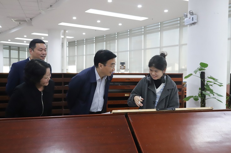 汇报会后,孙道胜带领与会人员深入图书馆各阅览室、自修室,与大学生读者深入交流,了解大学生读者使用图书馆的有关情况,聆听一线读者心声,叮嘱图书馆切实做好读者服务工作。