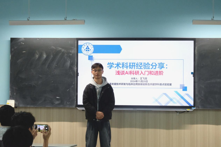 22级模式识别与智能系统专业团支书王飞龙同学和曾获2024年安徽省“研究生学术创新之星”的王鹏林同学进行科研成果专题经验分享。王飞龙同学曾荣获全国人工智能竞赛国家级一等奖,且以第一作者在国际知名期刊上发表多篇学术论文,他从如何选题、论文检索工具、文献查找、资料阅读以及研究生规划等方面进行了分享。王鹏林同学曾以第一作者发表SCI论文,他为新生分享了虚拟现实与智能交互系统、三维重建和智能数字人等科研成果。