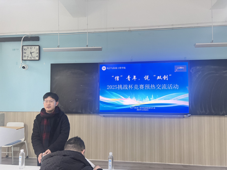 本网讯 近日,电子与信息工程学院(电信学院)在主教楼1509智慧教室成功举办了2025年“挑战杯”竞赛预热交流第一期活动。此次活动旨在积极备战即将到来的第十九届全国“挑战杯”课外学术作品科技竞赛,指导学生充分利用寒假黄金时间,提升竞赛能力,打磨参赛作品。同时搭建一个交流经验、展示成果的平台。活动吸引了20组学生团队作品的积极参与,现场气氛热烈。