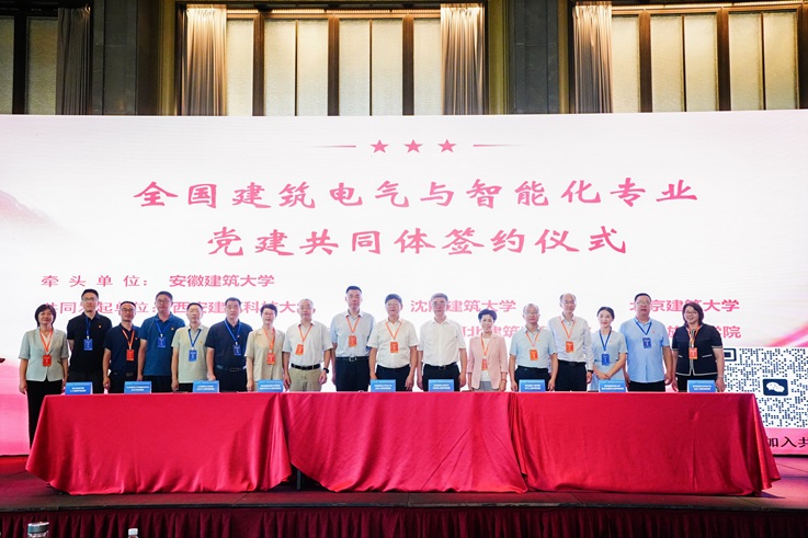 启动仪式上,必赢76net线路官网作为牵头单位,联合山东建筑大学、沈阳建筑大学、北京建筑大学、西安建筑科技大学、苏州科技大学、河北建筑工程学院、四川旅游学院7所发起高校,共同签署协议,宣告共同体正式成立。全国多所高校相关专业院系党组织负责人及党员代表参会,教育部高等学校土木类专业教学指导委员会副主任委员、建筑电气与智能化专业教学指导分委员会主任委员,必赢76net线路官网原党委书记、校长方潜生教授,中国建筑节能协会会长、住房和城乡建设部标准定额司原一级巡视员倪江波教授级高工,四川旅游学院党委常委、副校长李进军教授和中国建筑出版传媒有限公司教育教材分社副社长杜洁等专家,共同见证这一重要时刻。