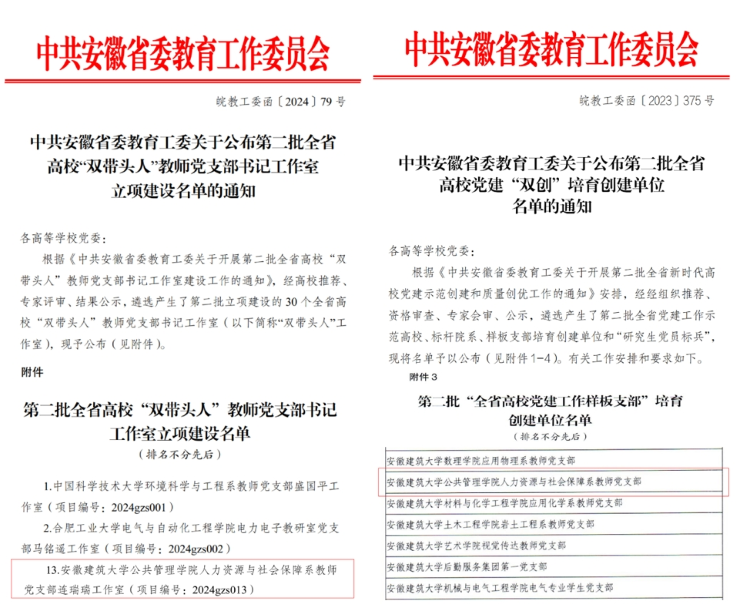 本网讯 2022年10月,学校党委遴选8个“双带头人”教师党支部书记工作室培育创建单位,公共管理学院人力资源与社会保障系(以下简称“人社系”)教师党支部连瑞瑞工作室获批立项建设;2024年2月,党支部被遴选为第二批全省高校“双带头人”教师党支部书记工作室立项建设单位。在学校及学院党委坚强领导下,人社系教师党支部扎实推进“双带头人”书记工作室培育建设,坚持“七个有力”,发挥“两个作用”,扎实推进党建工作和教育教学深度融合发展。通过创新实施“1-2-3-3-3”工作法,深化理论研究,创新活动载体,着力打造“红色管理”党建品牌,培育建设取得积极成效,人社系教师党支部获批省级新时代党建双创“样板支部”培育创建单位。