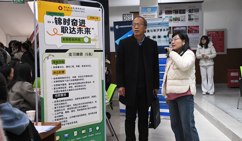 招聘会组织了国浩律师(合肥)事务所、安徽安泰达律师事务所、安徽云旗律师事务所、北京两高(合肥)律师事务所、北京盈科(合肥)律师事务所、上海锦天城(合肥)律师事务所、广东华商(合肥)律师事务所、北京京师(合肥)律师事务所、安徽世邦律师事务所、安徽国恒律师事务所、江苏斐多(合肥)律师事务所等十一家行业内知名企业,提供执业律师、助理律师类岗位30余个。
