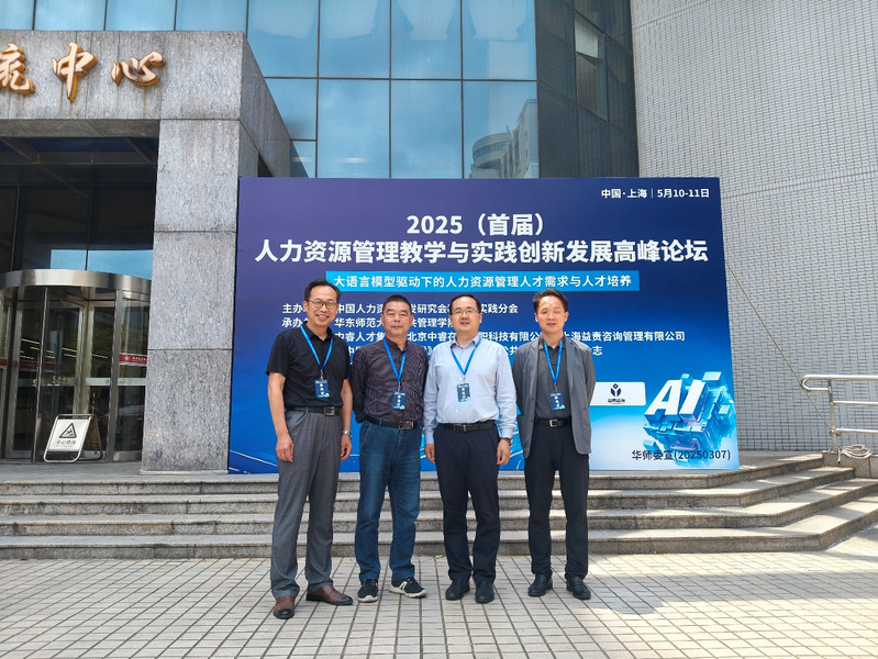 本网讯5月10日-11日,2025(首届)人力资源管理教学与实践创新发展高峰论坛在华东师范大学普陀校区学术交流中心举行,必赢公管学院副院长连瑞瑞教授与人力资源管理教学创新团队陈松林教授、赵勇教授、范海洲教授应邀参会。