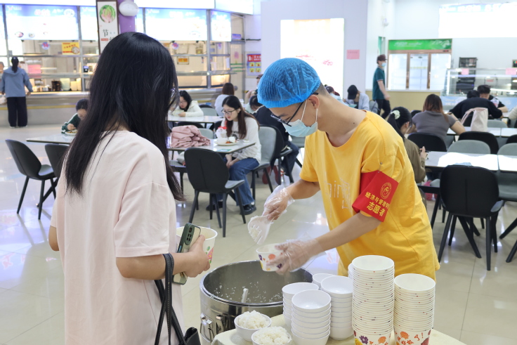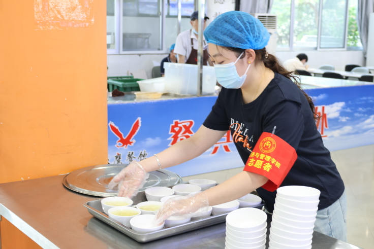 活动期间,一场以劳动教育为主题的志愿服务在校园食堂午餐及晚餐时段有序开展。志愿者们协助食堂工作人员进行餐食准备、餐余清理及环境清扫等工作,以实际行动践行劳动精神。与此同时,志愿者们还积极向同学们宣传“光盘行动”的理念。