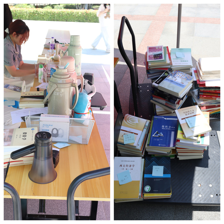 本网讯 近日,经管学院在金寨路校区食堂门口举办“青春不散场,旧物遇新主”毕业季跳蚤市场活动,现场热闹有序,为校园增添别样活力。