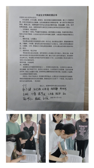 6月16日,学生第五、第八支部委员会结合学校离校工作要求,精心撰写了《毕业生文明离校倡议书》,号召全体毕业生党员以身作则。在支部党员大会上,全体党员认真学习了倡议内容,并郑重签名承诺,纷纷表示将带头维护离校期间校园安全稳定,以实际行动影响和带动身边同学文明离校。随后,支部还组织党员深入毕业生寝室,通过一对一讲解、面对面交流的方式发放倡议书100余份,确保文明离校观念深入人心。