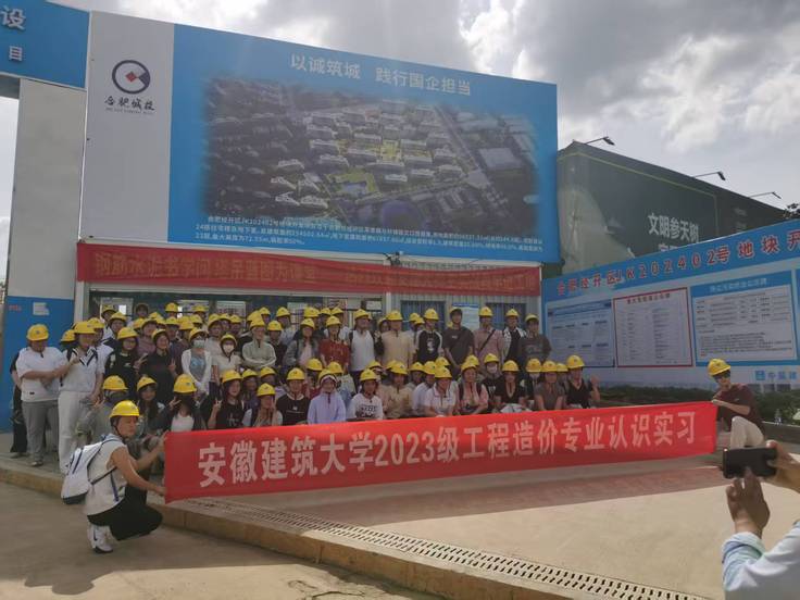 本网讯 近日,经济与管理学院工程管理系组织开展认识实习校外实践活动,汪之龙老师带领工程系相关教师与2023级工程管理专业和工程造价专业170名学生前往合肥市经开区JK202402号与JK202403号地块项目参观。