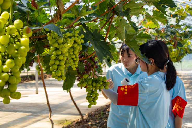 此次三下乡社会实践,无疑是一堂生动且深刻的“行走的思政课”。实践团的成员们宛如一群充满好奇与热情的探索者,穿梭于田间大棚、葡萄基地以及那如诗如画的绿水青山之间。他们将乡村振兴所取得的丰硕成果,化作最鲜活、最生动的教材,开启了一场别开生面的学习与宣讲之旅。“菁琯青年”宣讲团成员苏晚晴,站在充满希望的田野上,以饱满的热情和真挚的情感,向大家讲述着乡村发展的崭新变化与辉煌成就。“深入田间地头,我们见证了生态农业的勃勃生机;每一次访谈,都是对乡村经济多元化发展的深度思考··· ”。青年们用脚步丈量田野土地,用眼力捕捉乡土人情,将思政教育从课堂搬到了田间地头,让理论与实践真正交汇互融。