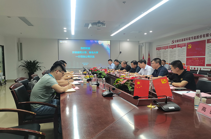 本网讯 8月19日,校党委副书记、校长黄显怀,校党委常委、副校长蔡国军带队赴安徽省通源环境节能股份有限公司开展调研交流,青岛大学修宗明教授受邀参加,安徽省通源环境节能股份有限公司董事长杨明热情接待了黄显怀一行。