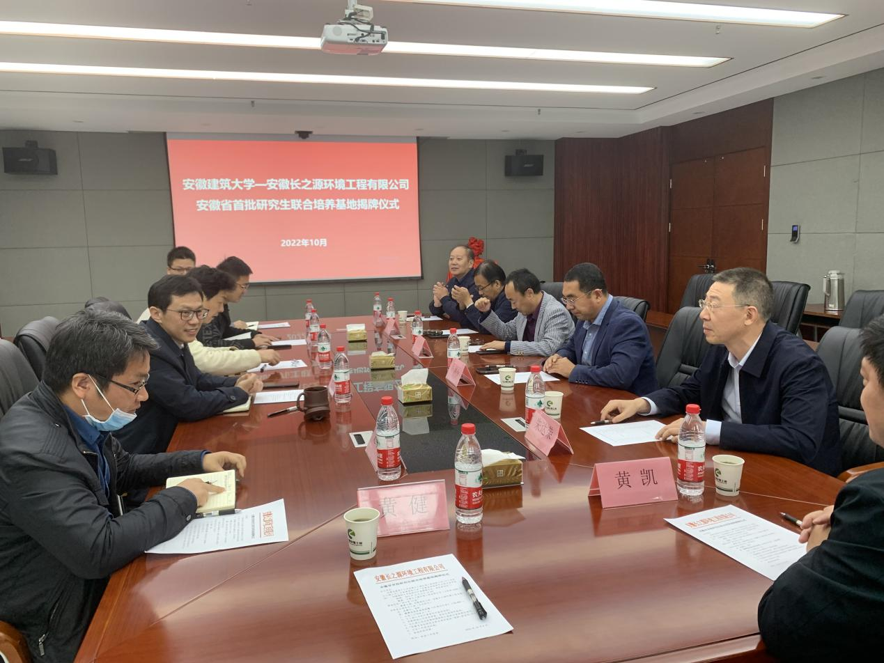 本网讯 为进一步加强学校研究生教育联合培养基地建设,提高专业学位研究生培养质量,10月9日,校党委常委、副校长蔡国军率研究生院、发展规划处、环能学院赴安徽长之源环境工程有限公司进行研究生教育联合培养基地建设座谈交流并参加基地揭牌仪式。