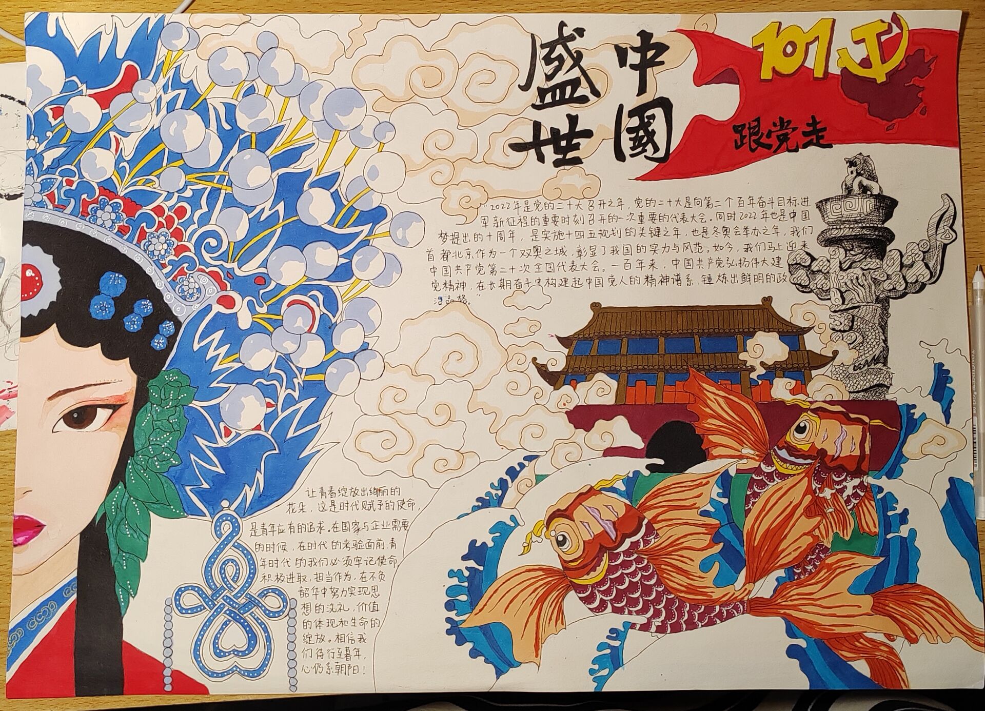 青春逢盛世,奋斗正当时。本次活动为热爱艺术的同学们提供了一个展现自我的平台,同时厚植学生的爱国情感,引导学生坚定不移跟党走。同学们以丰富多彩的作品向党的二十大献礼,用实际行动迎接党的二十大胜利召开。(作者:吴明轩,朱迪,廖徐情,檀思佳;审稿:戴前宏)
