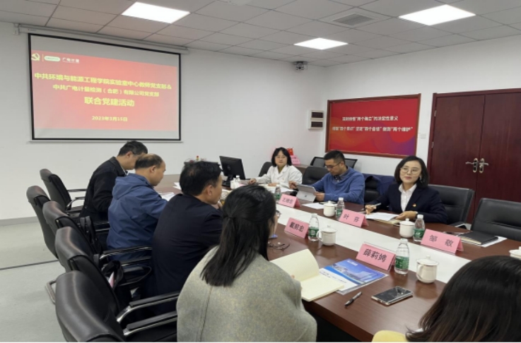 本网讯 为深入落实新时代党的建设总要求,进一步探索高校与企业党组织党建新模式,增进党建优势互补,以高质量党建引领高质量发展。2023年3月15日上午,环境与能源工程学院实验中心教师党支部一行在院党委书记戴前宏带领下前往广电计量检测(合肥)有限公司调研交流,与公司党支部开展校企党支部“结对共建”活动。