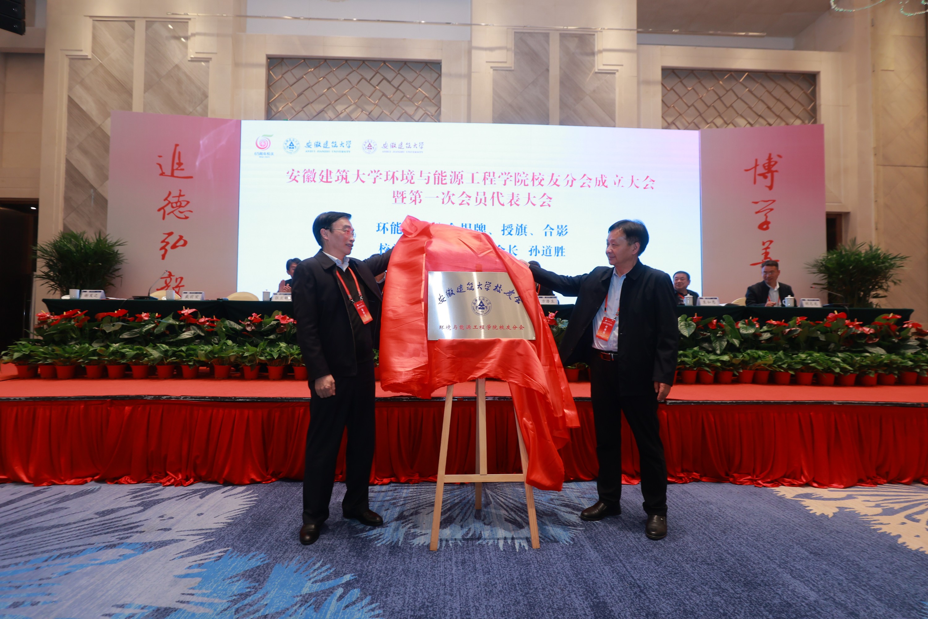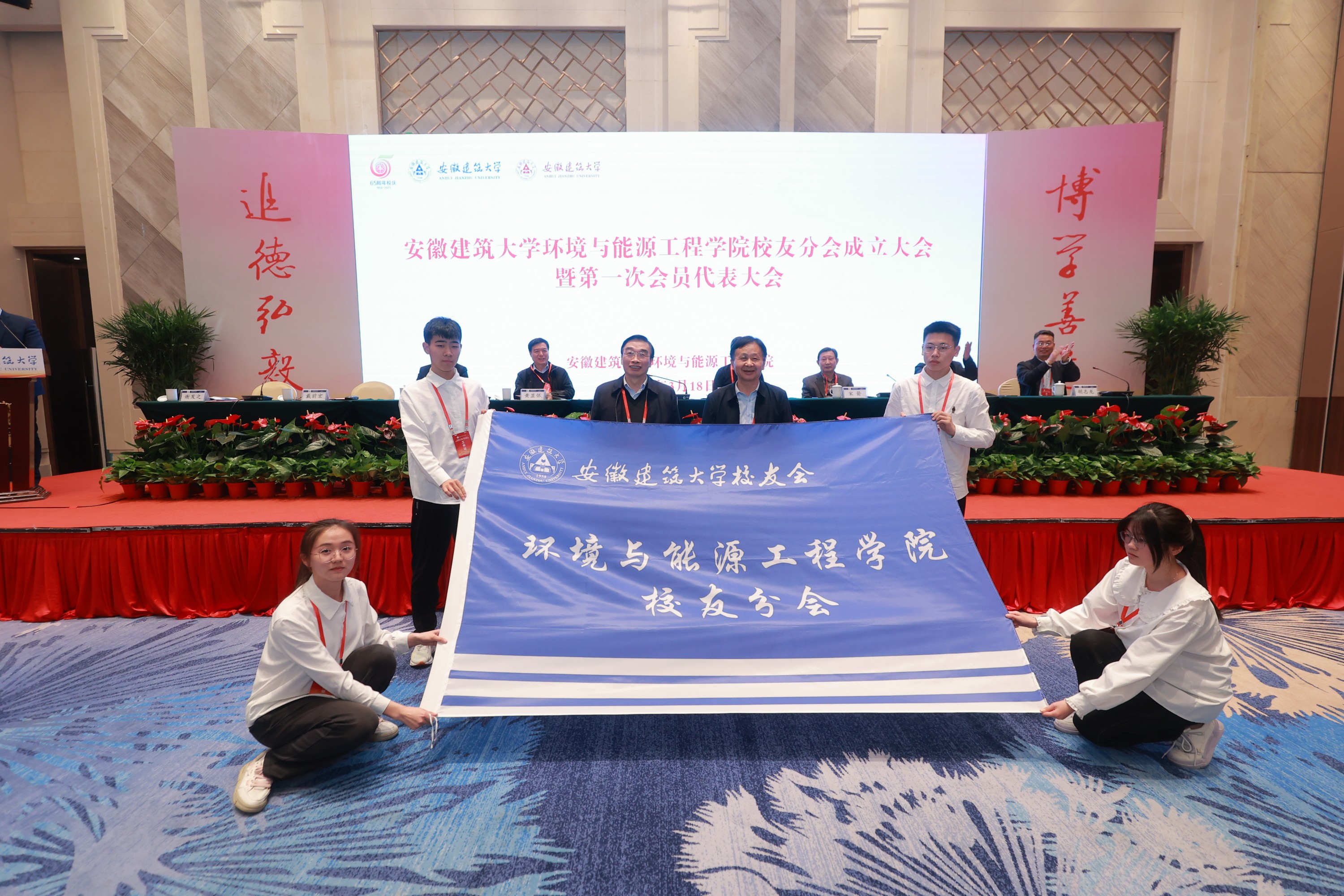 必赢76net线路官网党委书记、校友会会长孙道胜教授和必赢76net线路官网环境与能源工程学院党委书记、校友分会会长戴前宏老师共同为环境与能源工程学院校友分会揭牌,孙道胜为环境与能源工程学院校友分会授旗。校友分会会长、副会长、秘书长上台合影留念。