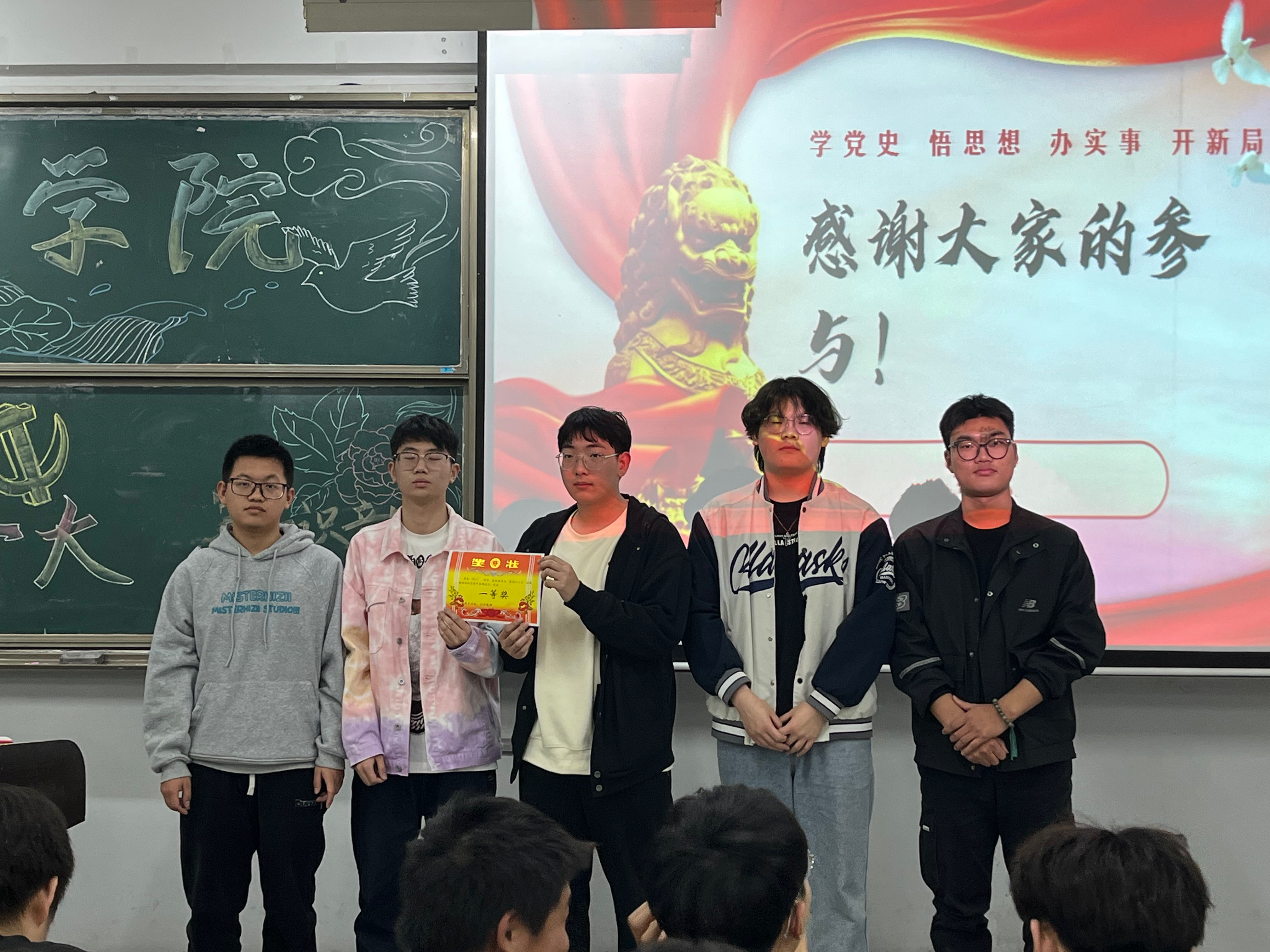 本次知识竞赛紧紧围绕党的二十大报告精神,以习近平新时代中国特色社会主义思想,党史、新中国史、改革开放史、社会主义发展史以及“学习强国”挑战答题等为主要内容。来自学院7个专业的7只队伍参加比赛,参赛队通过轮答、抢答、风险赛等形式展开了三轮激烈比拼,经过激烈的角逐,2022级环境工程专业小组荣获冠军。