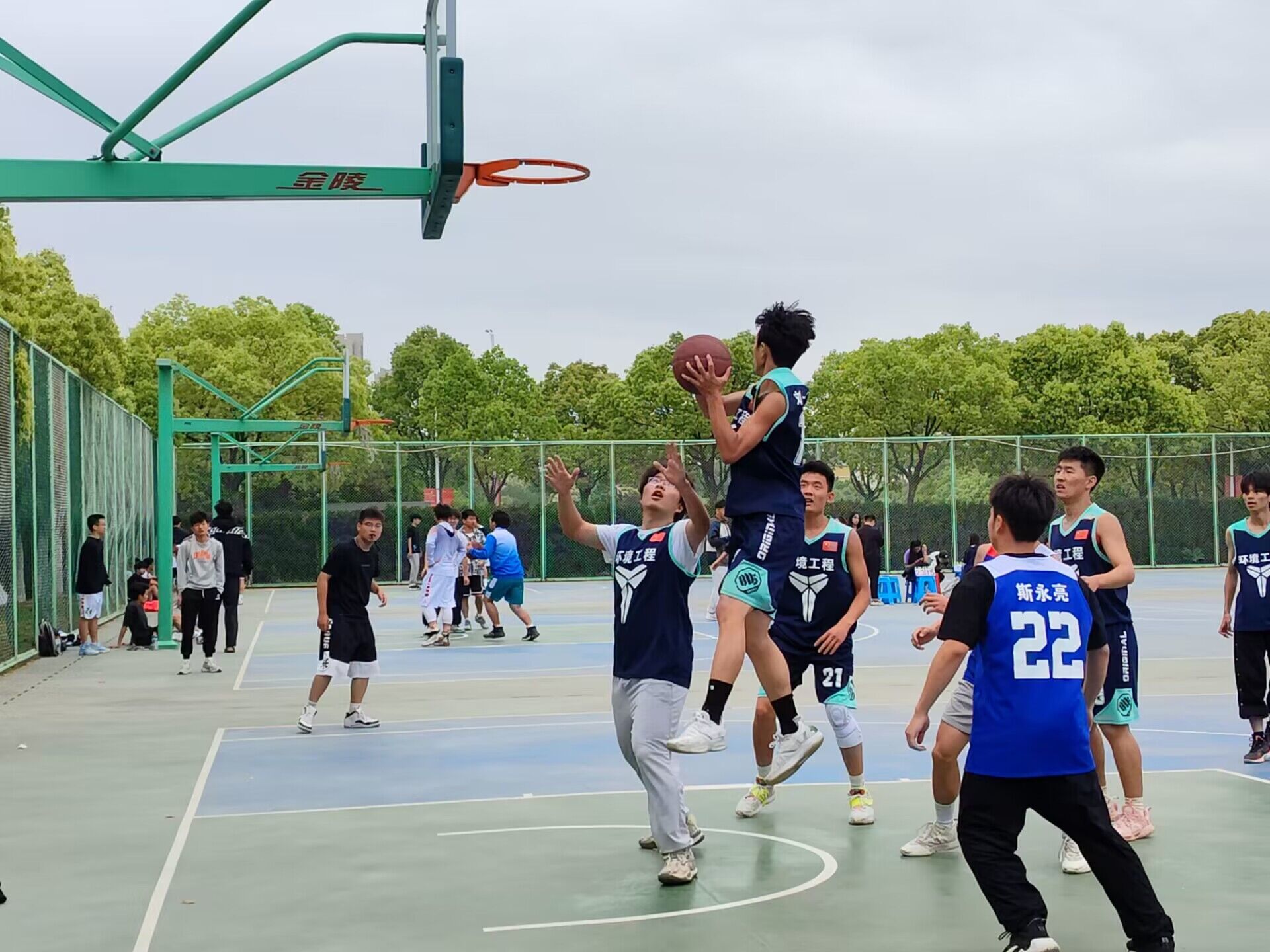 本次“环能杯”篮球赛共有24支队伍参加比赛,以年级专业为单位。通过抽签将参赛球队分为六个小组,采用单赛循环的形式比赛。比赛中运动员们尽情挥洒汗水,展示自我,展开了紧张的较量,各球队队员们默契传球、完美配合,动作连贯有力,投篮准确,双方选手不断突破极限,上演着球技与体能之间的较量。运动健儿们用灵动坚毅的步伐,灵活矫健的动作,展现了奔腾的青春,上演了一出出视觉盛宴。场边的加油呐喊声更是让人血脉激扬,小小的篮球牵动着每个人的心。经过一个多月的激烈角逐,20级环境工程专业的球队凭借精湛的球技和熟练的配合夺得总冠军。