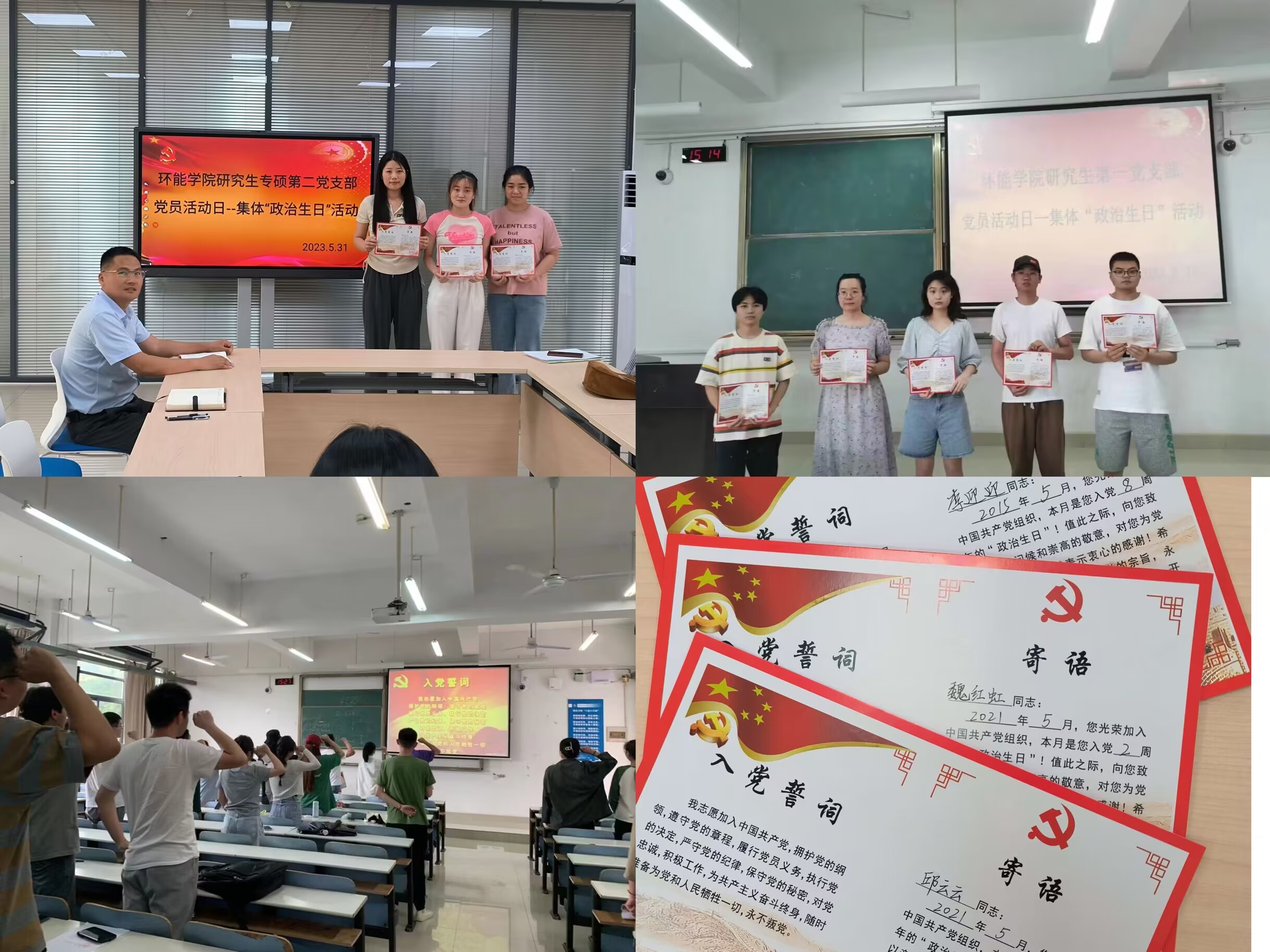 本网讯 政治生日忆初心,永葆初心强党性。为深入开展学习贯彻习近平新时代中国特色社会主义思想主题教育,增强研究生党员的责任感和荣誉感,让党员感受到组织的温暖关怀,切实提高党员的党性修养,5月31日,环能学院研究生党支部为入党月份在5月的11名党员集体过“政治生日”活动,三个研究生党支部党员分别在各自支部参加大会。