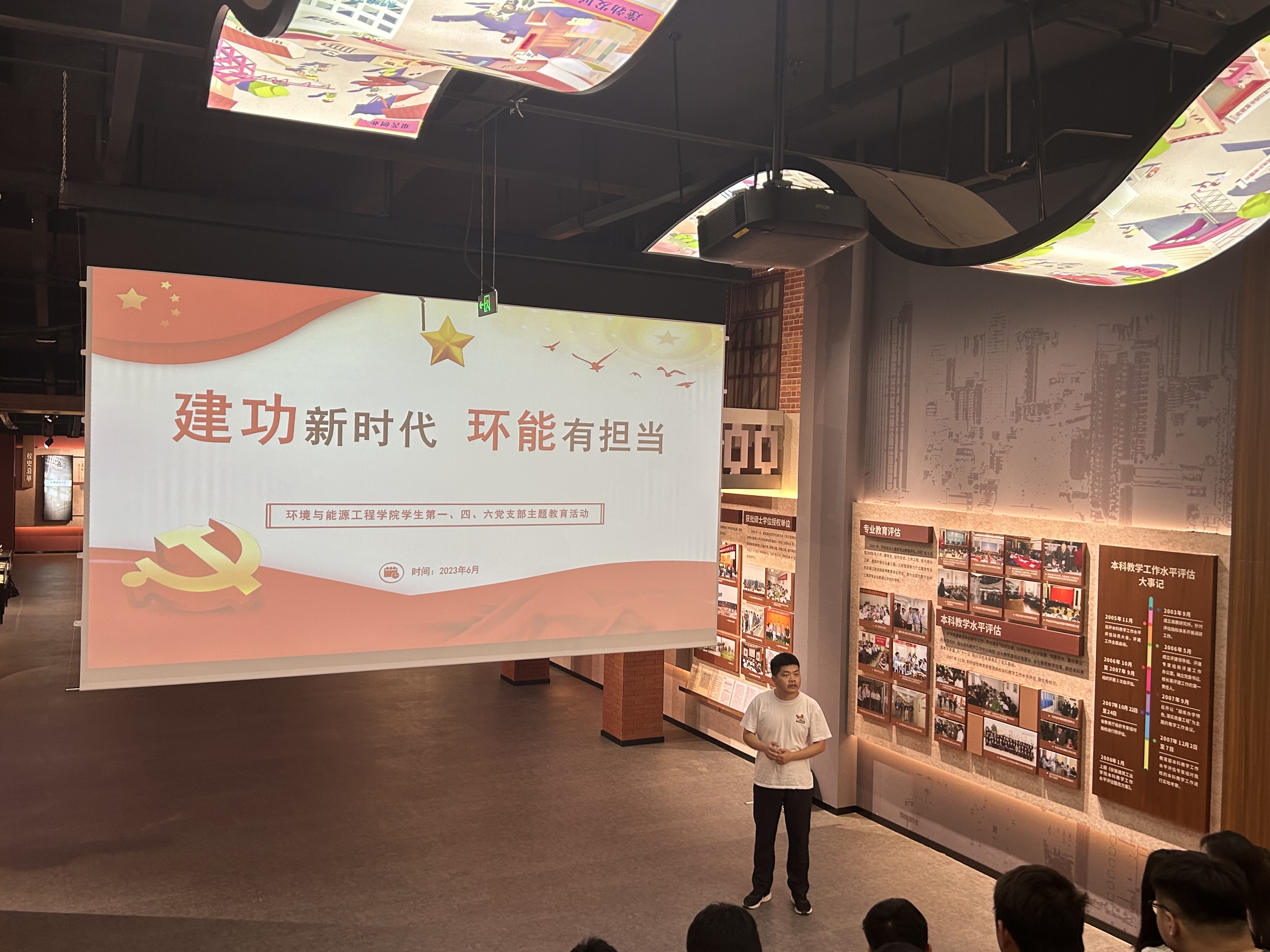 在校史馆里,支部书记为各位毕业班党员讲授了离校前的最后一次党课。学生第一党支部支部书记朱迪从组织关系转接流程、组织关系转接去向、组织关系转接常见问题三个方面对毕业生党员组织关系转接事宜进行具体介绍,希望各位毕业生党员站好最后一班岗,有序做好离校工作。学生第四党支部支部书记徐明露以《建功新时代环能有担当》为题,希望各位毕业生党员,牢记习近平总书记嘱托,深刻领悟“先锋分子”的内涵要求,发挥好青年先锋作用,勇担时代赋予的历史使命,争做有理想、敢担当、能吃苦、肯奋斗的新时代让党和人民需要、党和人民放心的先锋分子。