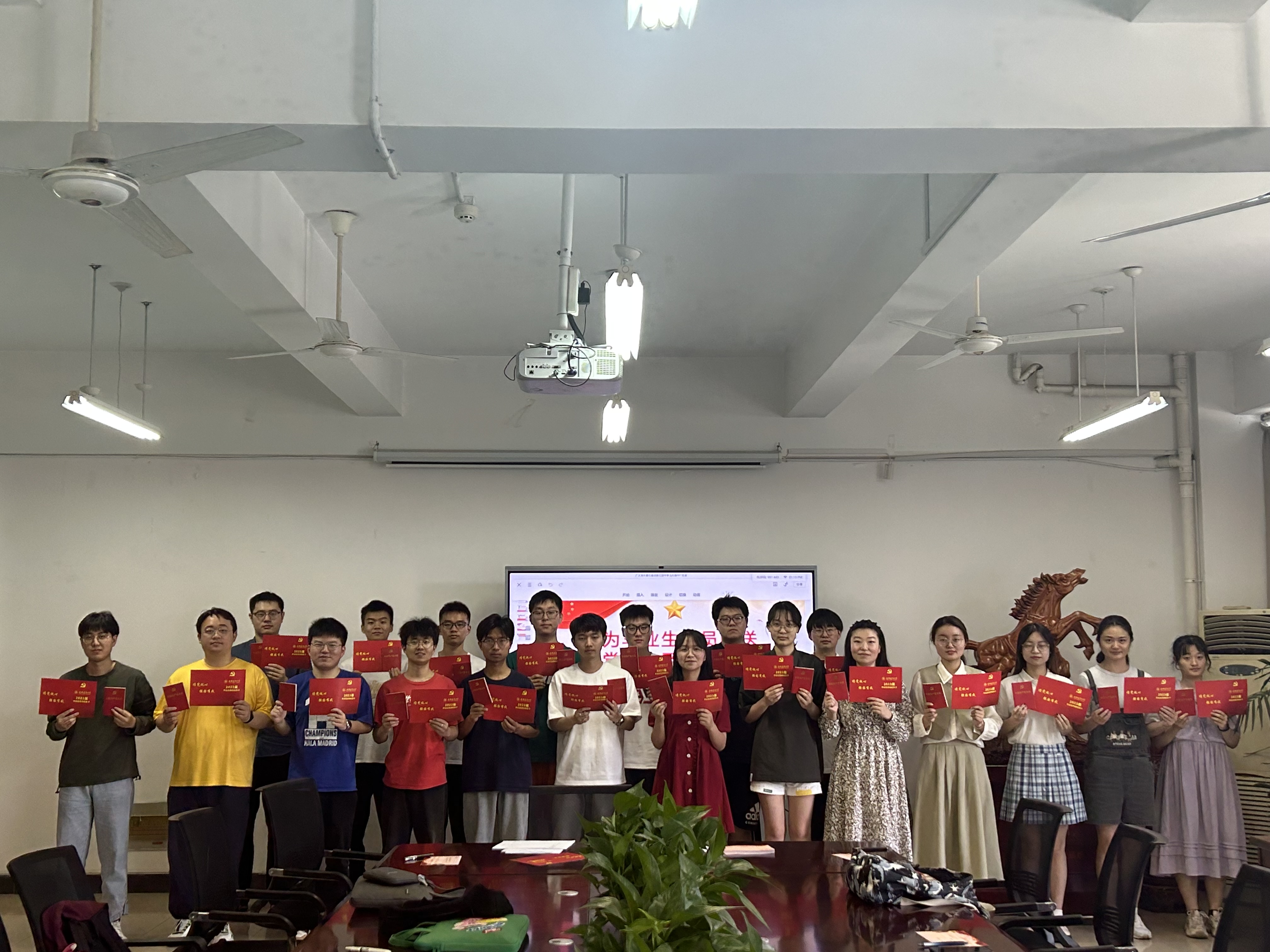 为进一步强化毕业生党员的党性意识,学生第一党支部开展“党章进行囊、信仰伴我行”活动,支部书记为每位毕业生送上了一本《党章》和一张党员纪念卡。希望各位毕业生党员能自觉用习近平新时代中国特色社会主义思想武装头脑、指导实践,心系“国家事”,肩扛“国家责”,时常温习党章、时刻自律自省,以实际行动践行党员的责任和义务。