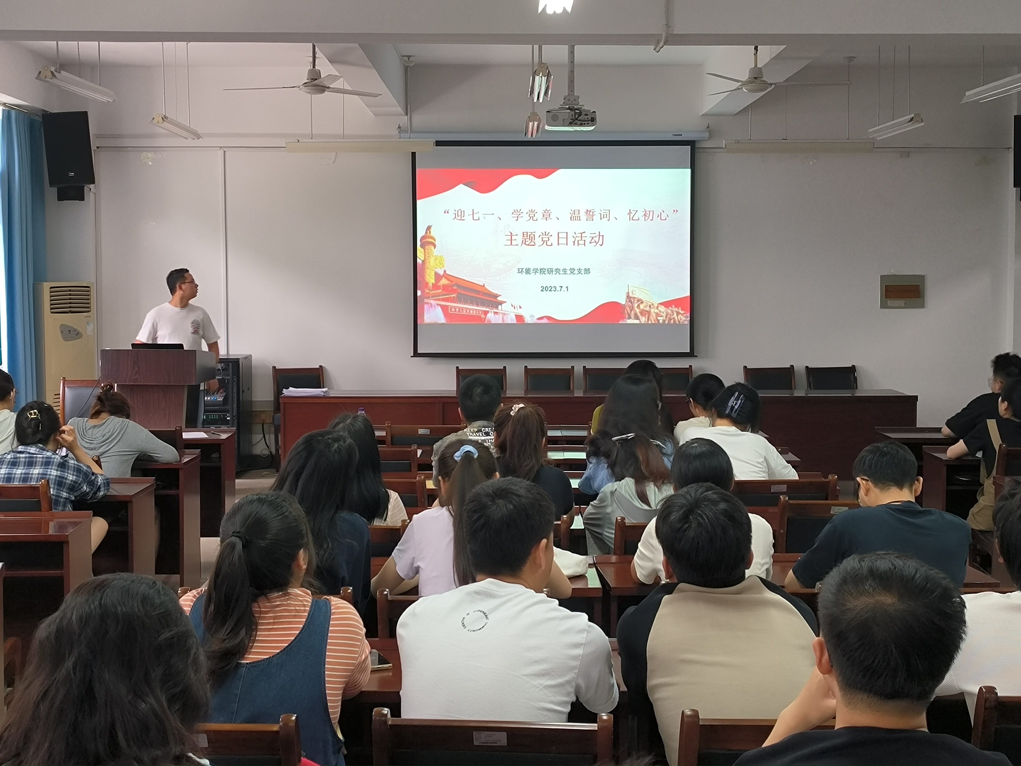 本网讯 百年征程波澜壮阔,百年初心历久弥坚。为深入开展学习贯彻习近平新时代中国特色社会主义思想主题教育,进一步弘扬党的优良传统和作风,增强基层学生党组织活力,发挥研究生党员的先锋模范作用,营造积极向上的节日氛围。7月1日,在中国共产党迎来102年华诞之际,环能学院研究生党支部开展“迎七一、学党史、温誓词、忆初心”主题党日活动。