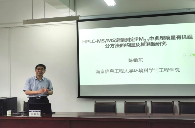 本网讯 6月29日,南京信息工程大学陈敏东教授来环境与能源工程学院开展学术交流,并做题为“HPLC-MS/MS定量测定PM2.5中典型痕量有机组分方法的构建及其溯源研究”的学术讲座。讲座由环境与能源工程学院院长谢发之教授主持,校科技处副处长赵强、学院骨干教师以及部分硕士生参加了此次讲座。