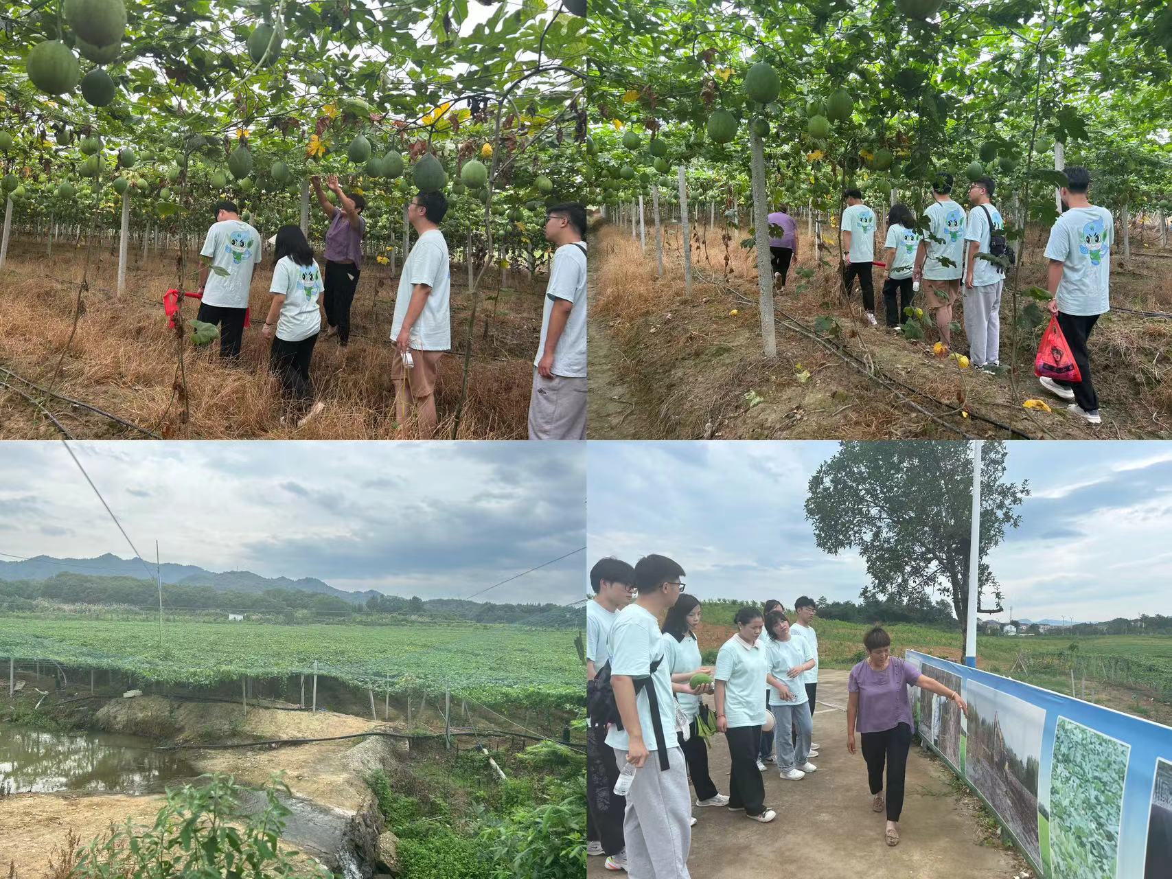 三江村在镇党委政府的支持下,大力发展瓜蒌子特色产业,积极落实产业帮扶政策,推动脱贫户学技术,有效带动农户增收,让老百姓实现家门口就业。为一步了解产业在乡村振兴中发挥的作用,实践团队走进汤池镇三江村的瓜蒌基地里,映入眼帘的是一排排的绿色棚架,绿色的小瓜蒌在藤蔓绿叶间忽隐忽现,在倾听负责人介绍的同时,同学们还不忘与小瓜蒌合影留念。通过与负责人的交谈以及实地学习,同学们不仅对当地的特色产业有了一定的了解,也认识到当地对于特色产业的扶持产生的良好效果。在感受现代化科技为农业发展带来便利的同时,也引发了实践团队对于科技助农、科技富农的深入思考。