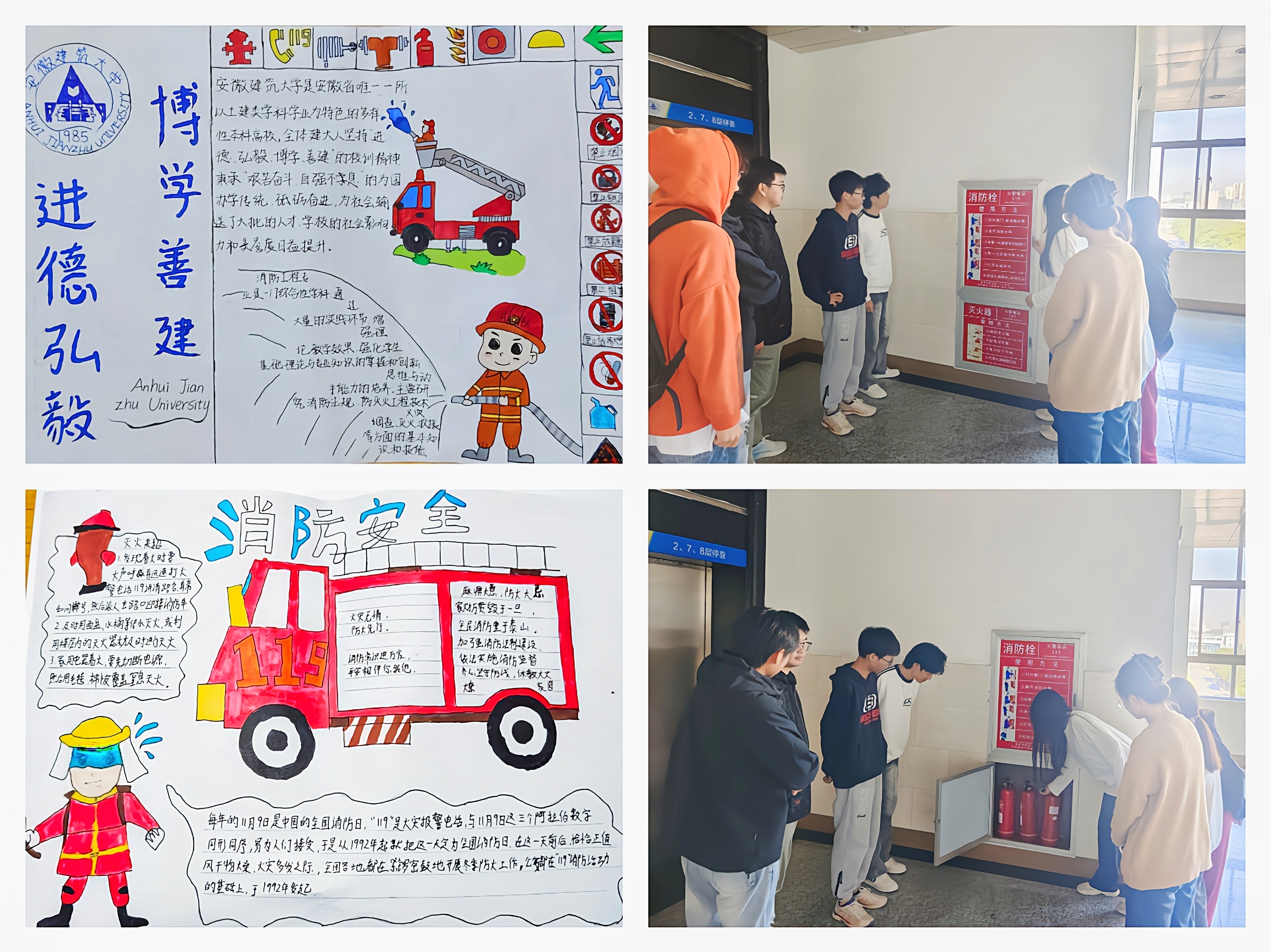 “关注消防,珍爱生命,共享平安”手抄报活动吸引了广大同学积极参与,同学们广泛收集消防安全的资料,并通过手抄报形式展现出来,作品标题新颖、色彩丰富,图文并茂、书写美观,展现了大家对消防安全知识的深刻理解。另外。活动还就灭火器、水带等消防工具的使用进行了详细的说明,切实提高同学掌握消防器材使用技能。