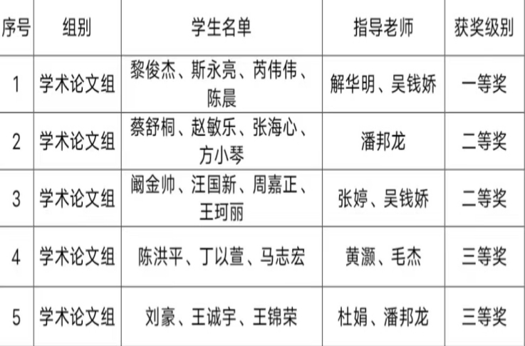 环境与能源工程学院师生通过赛前的充分准备,提交了参加初赛的学术论文作品8项,其中5项作品入围决赛。经过激烈角逐,我院参赛队伍分别获得学术论文组一等奖1项,二等奖2项,三等奖2项的佳绩。指导老师解华明、吴钱娇获得“最佳指导教师”荣誉称号。