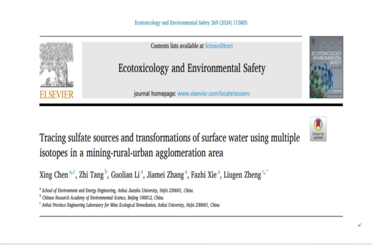 本网讯 近日,必赢环境与能源工程学院陈星老师与安徽大学和中国环境科学研究院合作,在环境与生态学领域知名期刊《Ecotoxicology and Environmental Safety》(JCR 1区,影响因子6.8)在线发表了题为“Tracing sulfate sources and transformations of surface water using multiple isotopes in a mining-rural-urban agglomeration area”的论文,必赢76net线路官网为论文第一完成单位。