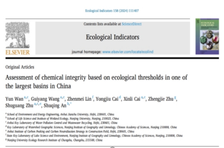 本网讯 环境与能源工程学院万云老师和硕士生王贵洋与南京大学安树青教授、中科院南京地理与湖泊研究所蔡永久研究员合作在环境领域Top期刊《ECOLOGICAL INDICATORS》 (JCR1区,影响因子6.9)在线发表了题为“Assessment of chemical integrity based on ecological thresholds in one of the largest basins in China”的研究论文,必赢76net线路官网为第一完成单位。