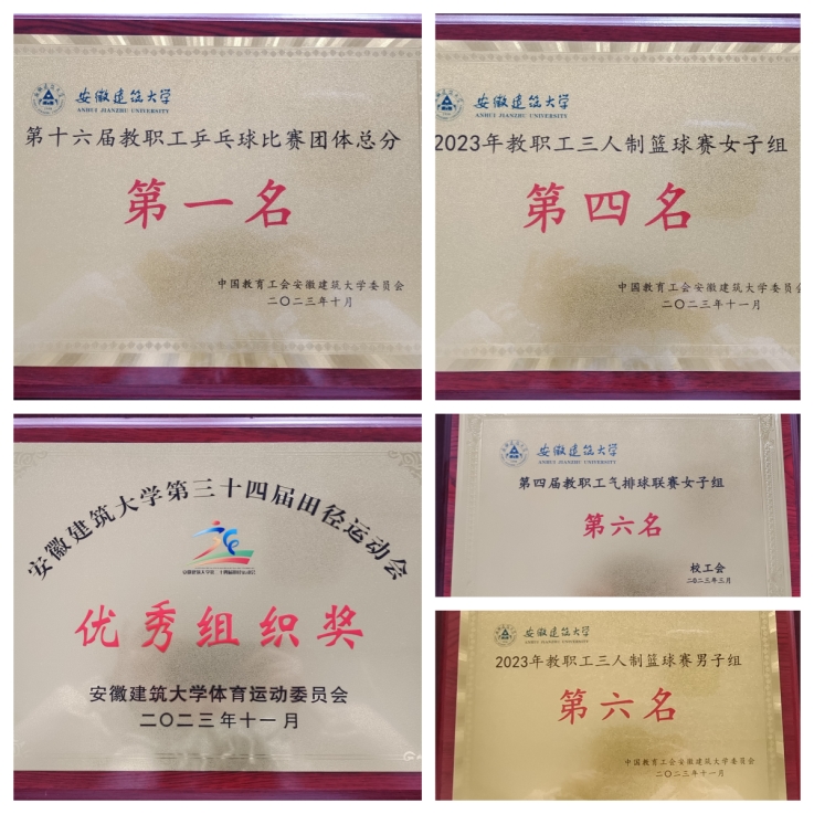 发挥工会桥梁作用,增强学院凝聚力。学院分工会组织开展“通俗桥牌”、“迎三八 低碳生活健步行”、赴舒城县五里桥村开展篮球友谊赛等系列群众性文体活动,引导教职工听党话、跟党走。2023年,学院荣获校第十六届教职工乒乓球比赛团体总分第一名、校教职工三人制篮球赛女子组第四名,学校教职工五三人制篮球赛男子组第六名,学校第三十四届田径运动会优秀组织奖等。